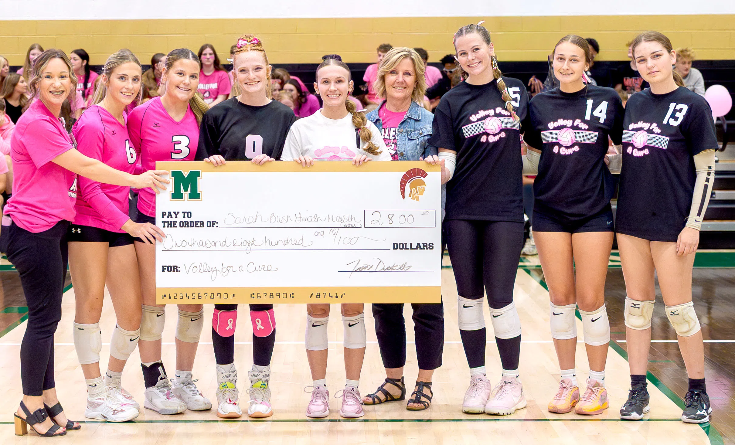 The Mattoon and Charleston high school volleyball teams recently donated $2,800 to the Sarah Bush Lincoln Health Foundation, to benefit the Regional Cancer Center. The teams’ donation will be used to help people who are unable to pay for items associated with their care while undergoing chemotherapy and/or radiation.